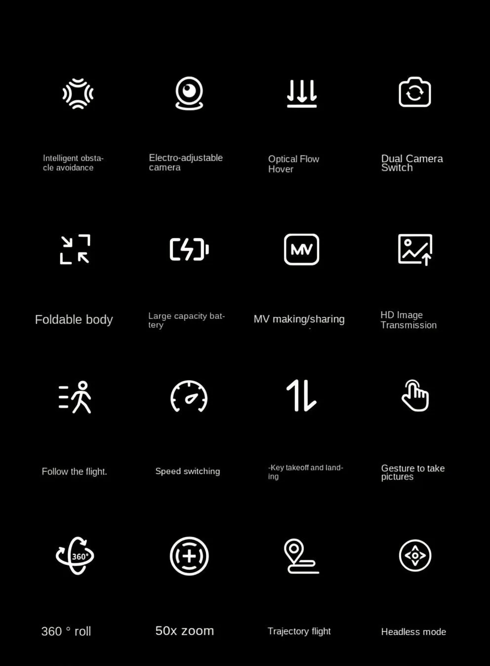 4K HD camera: For high-quality photos and videos. Intelligent obstacle avoidance: Safe and precise flying. Altitude hold mode: For stable flight. One-button rewind: Easy rewind. Two cameras: Multiple angles to shoot. App control: Management via mobile phone. Four-axis design: Greater flight stability. Powerful engines: Quiet and efficient flight. Ideal for beginners: Easy to use.